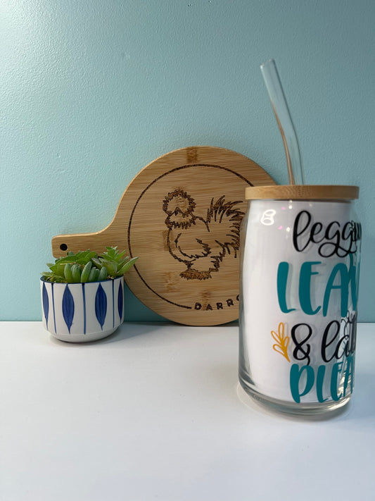 Leggings, Leaves, and Lattes Glass Can