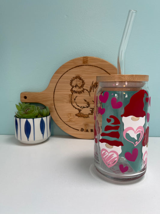 Hearts and Gnomes Glass Can